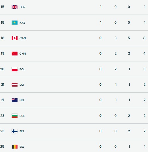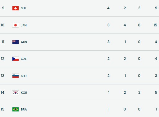 Česká výprava je s na své poměry velmi dobrým ziskem 2 zlatých a 2 stříbrných na 12. pozici za Austrálií a před Slovinskem. Nějaké možnosti na rozšíření této sbírky ještě má, snad se něco povede. Ta hlavní želízka už ale byla (ne)proměněna.